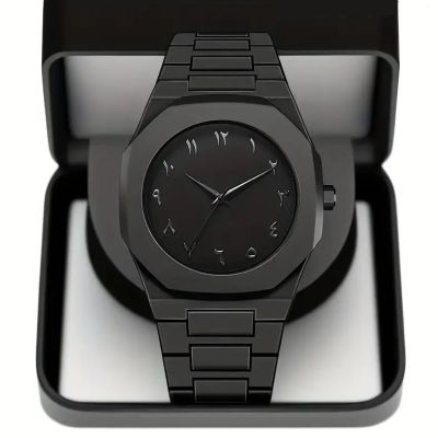 Trending Arabic Aura Watch Stainless Steel Watch High End Luxury Quartz Analog Business Watch Trend Chain Fashion Watch Casual Men Arabian Wrist Watches For Boys Gents Woch - Black Blue Grey TM