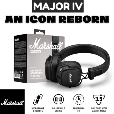 Marshall Major IV Wireless Bluetooth Headphones – Boost Battery, Quick Charge, Foldable Design