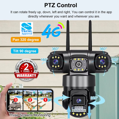 4G Triple Lens 6Mp CCTV Camera with Two Way Audio Night Vision Color (code:1027B)