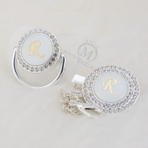 MIYOCAR silver Initial letter R elegant bling pacifier and pacifier clip BPA free bling ideal gift SGS pass LR-1
