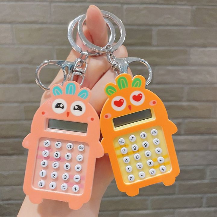 PINGIA Button Battery Exquisite Cartoon Calculating Tool Bag Pendant Student Stationery Pocket Calculator Small Computer For Women Men Cartoon Key Chains Calculator Keyring Electronic Calculator Carrot Calculator Keychain