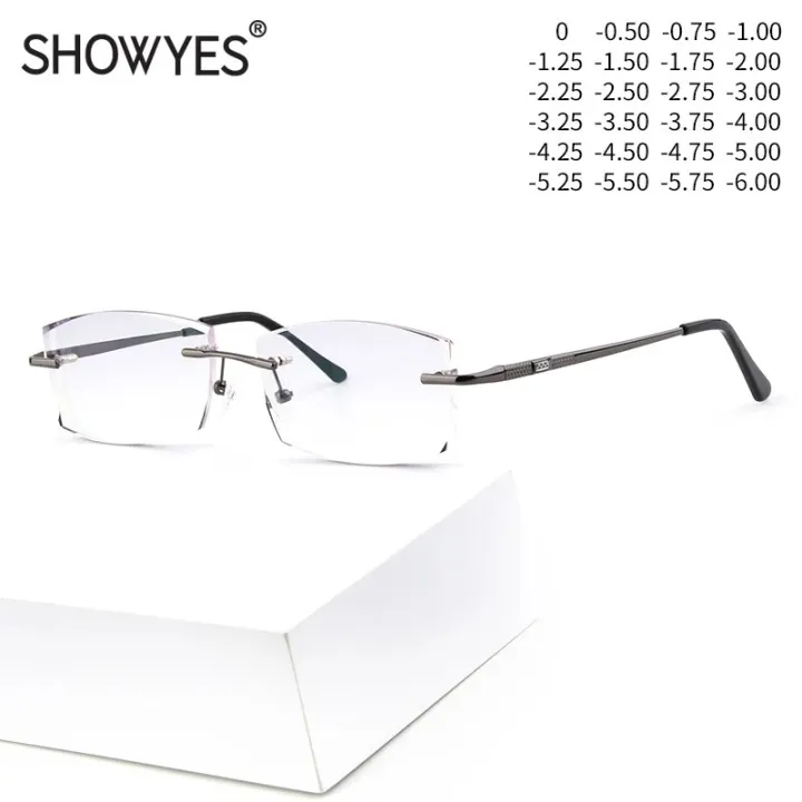 Oversized Myopia Glasses Men Gradient Gray Lens Rimless Frame Anti Blue Light Computer Eyeglasses For New Business Male Eyewear
