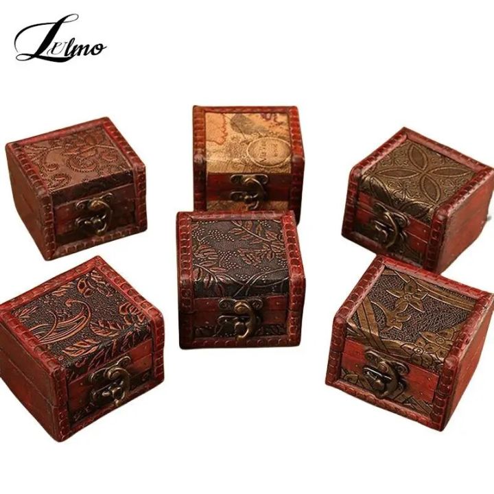 Rustic Wooden Jewelry Box with Lock Storage Box Jewellery Trinket Box Holder for Ring Brooches Bracelets Earrings Ear Studs