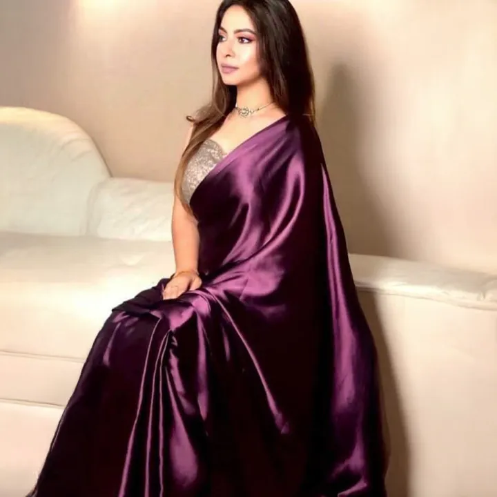 Purple Valentina Saree with Sequin Blouse Piece for Weddings and Parties, 6 Meter Length