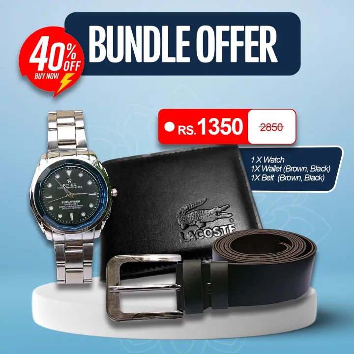 Watch for Men Stainless Steel + Free PU Leather Belt + Free Wallet | Bundle Offer Gift for Men