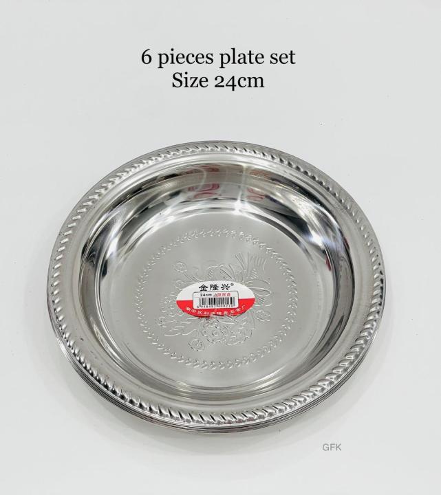 06PCS Silver Plate Set Wide (26cm/24cm) dining plates brings a touch of elegance and sophistication to every meal.