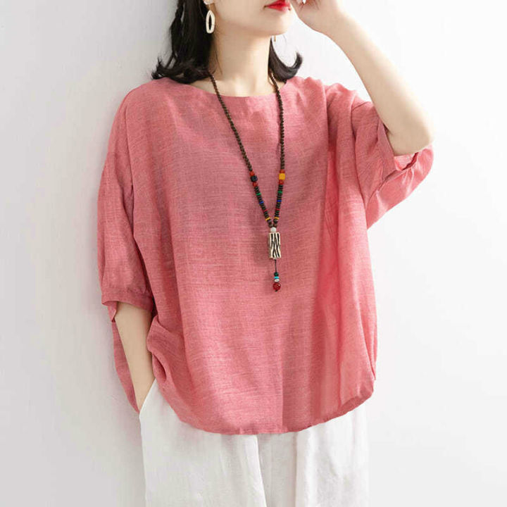 100%Cotton Loose Large Size Casual Women's Clothing Summer New Short Sleeve Imitation Cotton and Linen T-shirt Top Half SleeveTT-shirt Women's