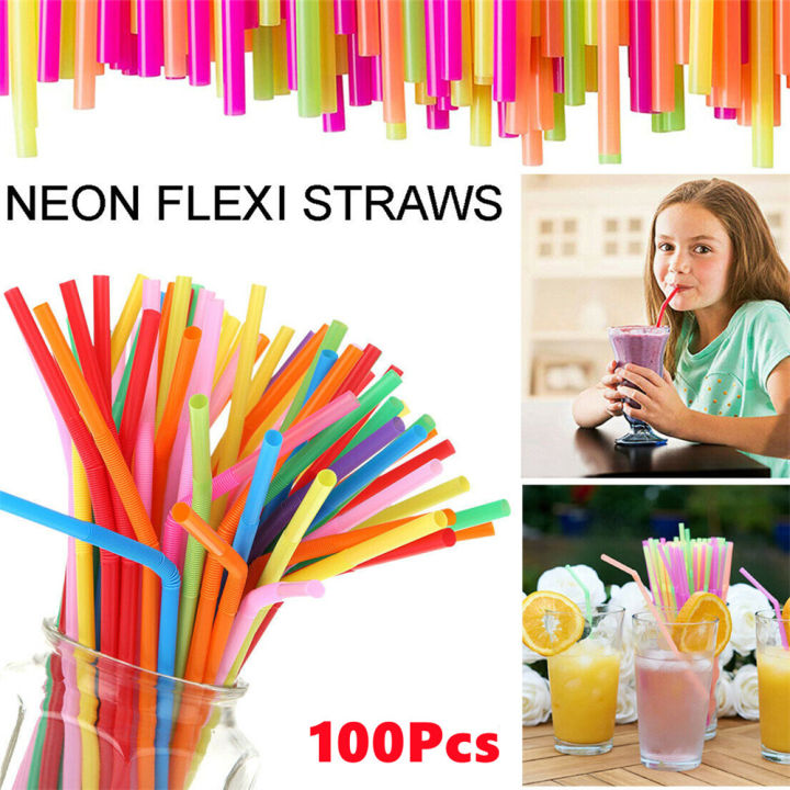 100Pcs%20Neon%20Coloured%20Straws%20Flexible%20Bendy%20Plastic%20Birthday%20Party%20Wedding%20Drinking%20Straw%20-%20Image%201