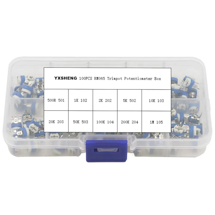 100Pcs%20RM065%20Carbon%20Film%20Horizontal%20Trimpot%20Potentiometer%20Assortment%20Kit%2010%20Values%20Variable%20Resistor%20500R%201K%202K%205K%2010K%20-1M%20Boxs%20-%20Image%201
