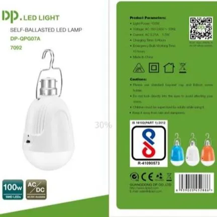 100W Rechargeable LED Bulb, Shape: Round, Emergency light power cut solution