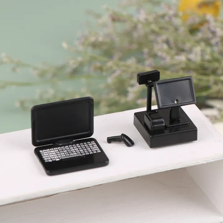 1/12 Scale Supermarket Store Decor Miniature Dollhouse Food Scales Barcode Scanner Cashier Laptop Model Doll House Accessories