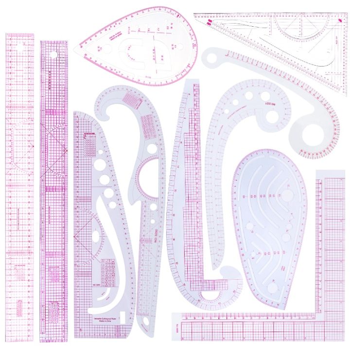 11Pcs Multifunctional French Curve Ruler Soft Plastic Patchwork Ruler Measure Dressmaking Drawing Template Craft Sewing Tools
