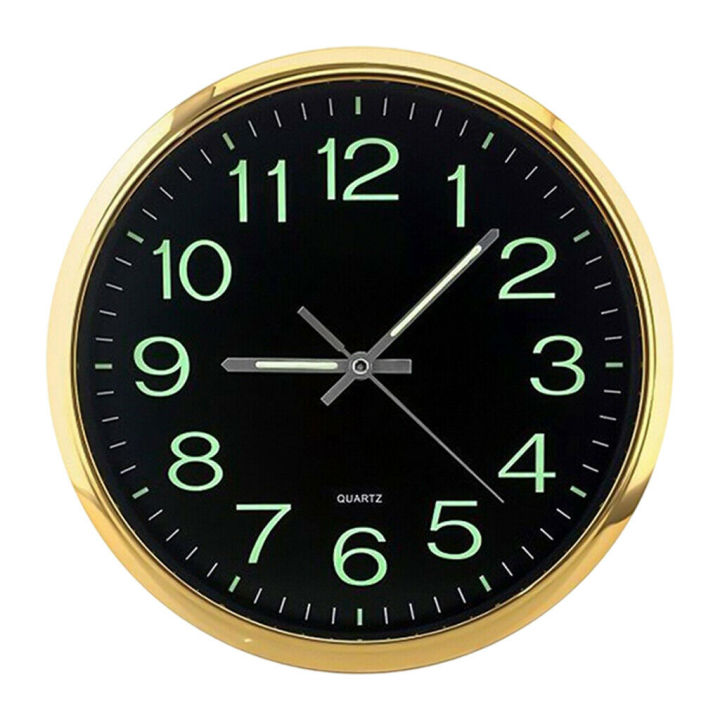 12 Inch Round Large Luminous Wall Clock Glow in the Dark Non-Ticking Indoor Decor -Golden