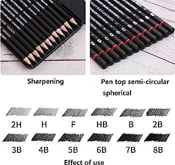 Artist pencil 12 sized pcs SET Sketching Pencils 12 Professional Sketch and Drawing Pencils - Art Pencils - Drawing Pencil Kit pack of 12 - 8B to 2H - Graphite Pencils for beginners and Pro Artists