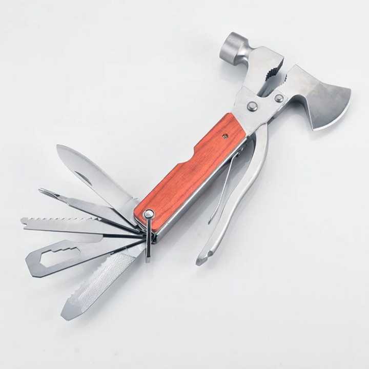 14 in 1 Multi Functional Multi tool Stainless Steel and Wooden Claw Hammer and Axe