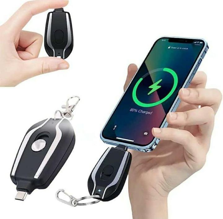1500mAh Mini Power Emergency Pod Keychain Charger with Type-C Ultra-Compact Mini Battery Pack Fast Charging Backup Power Bank Mini Battery Pack For Lightning / Type-C Charging Backup Power Bank For IPhone Android Devices 1500mAh Portable Keychain Charger