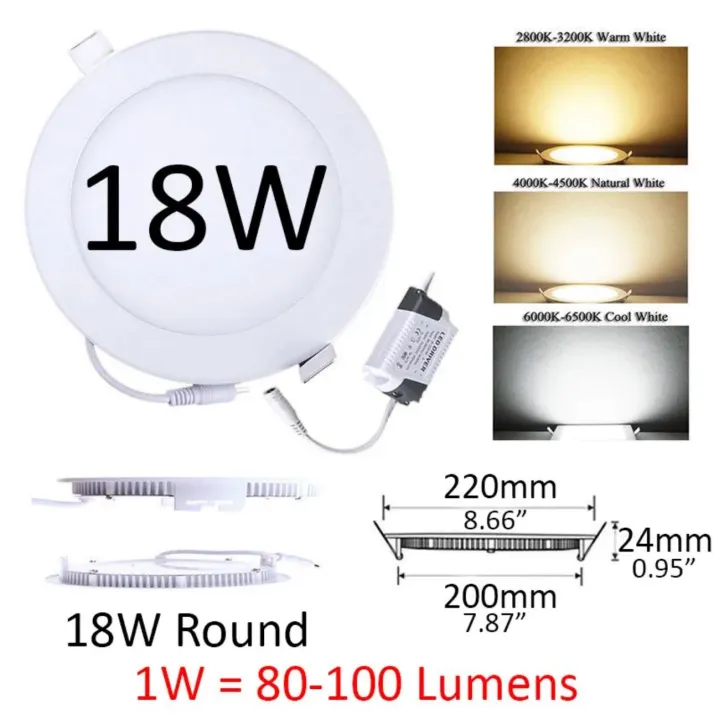 18W LED Panel Light Sunk (ROUND) Ceiling Panel Light WHITE/YELLOW