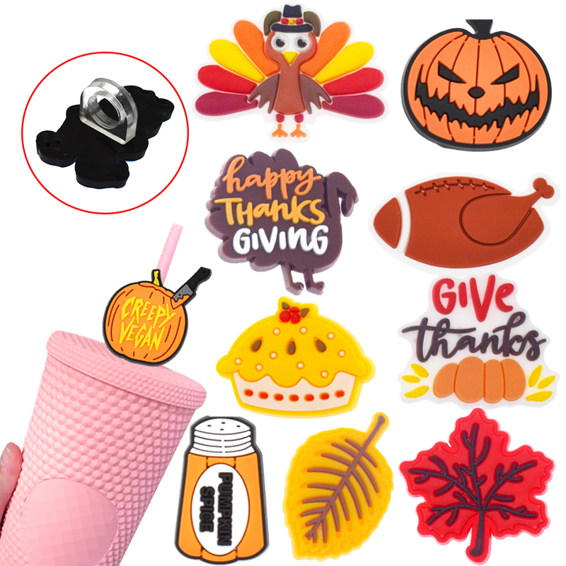 1pcs Thanksgiving Autumn Straw Per Thanksgiving Pumpkin Straw Pers Charms Straw Pers For Tumbers Drink Cover Straw Tip