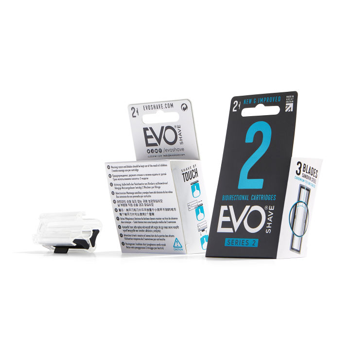 2 Cartridge Pack - EvoShave Series 2 - Unisex Razor - Shave by Touch – Bidirectional 3 Blade Cartridges