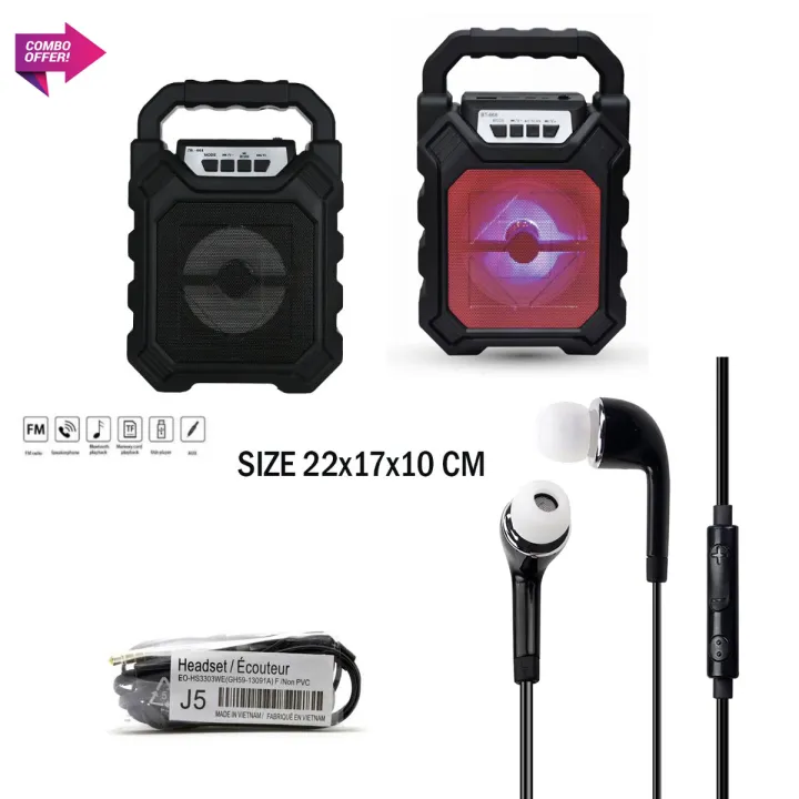 2 in 1 Combo Offer Speaker BLUETOOTH BT-668 LED LIGHT PORTABLE Speaker + J5 Head Set Earphone