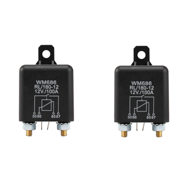 2 Pcs 12V 100Amp 4-Pin Heavy Duty ON/OFF Switch Split Charge Relay for Auto Boat Van Black Spare Parts