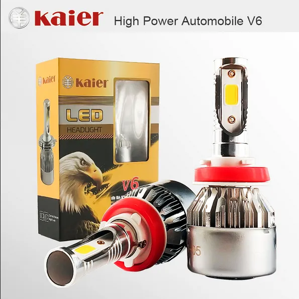 2 Pcs KAIER V6 LED H8/H11/H16 BULB 6000k Car LED Headlight Hi/Lo Turbo Light Bulbs