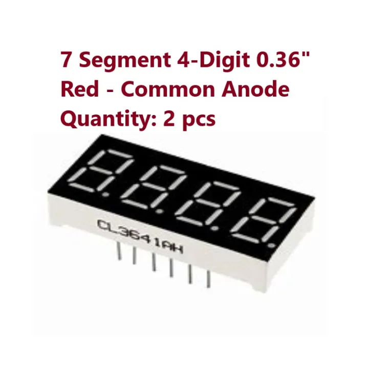 2 pcs of 7 Segment 4 Digit 0.36" Common Anode Red LED Display