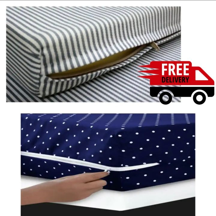 Mattress Cover Protector for Single, double, tribble and more Bed sizes - Cotton with Zipper 200TC Feather Box Multicolor