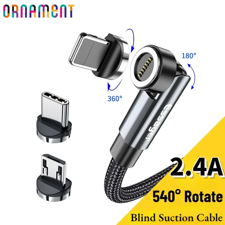 2.4A USB Fast Charging Phone Cable 540° Rotate Bent Charging Line 3 in 1 Circular Blind Suction Charging Wire Micro Type C Cable Compatible for iPhone Android