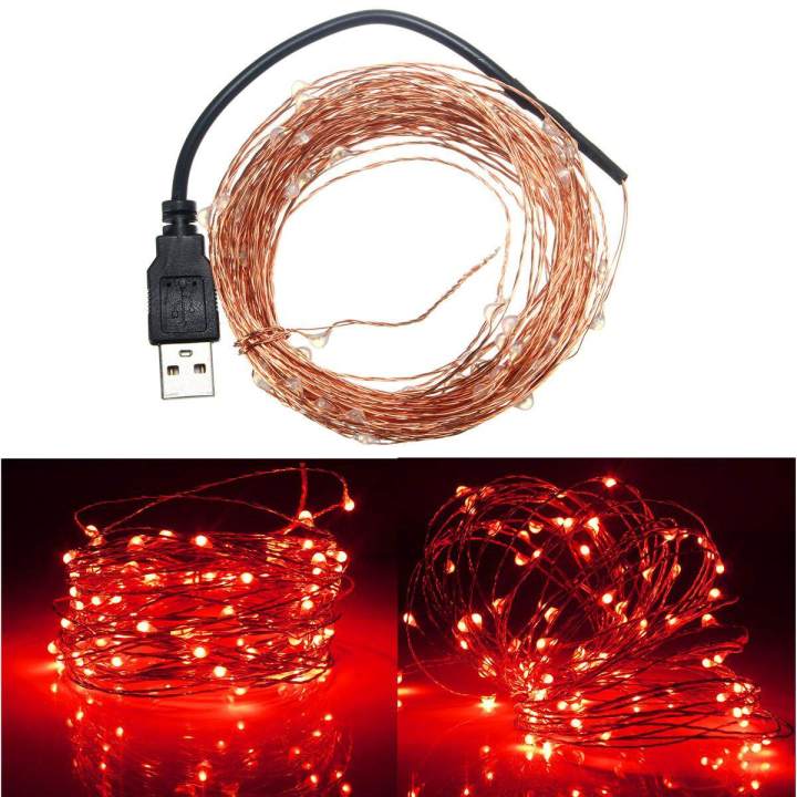 2Pcs Furniture 10m 100 LED USB USB Copper Wire LED String Fairy Light Strip RGB Color 180 degree