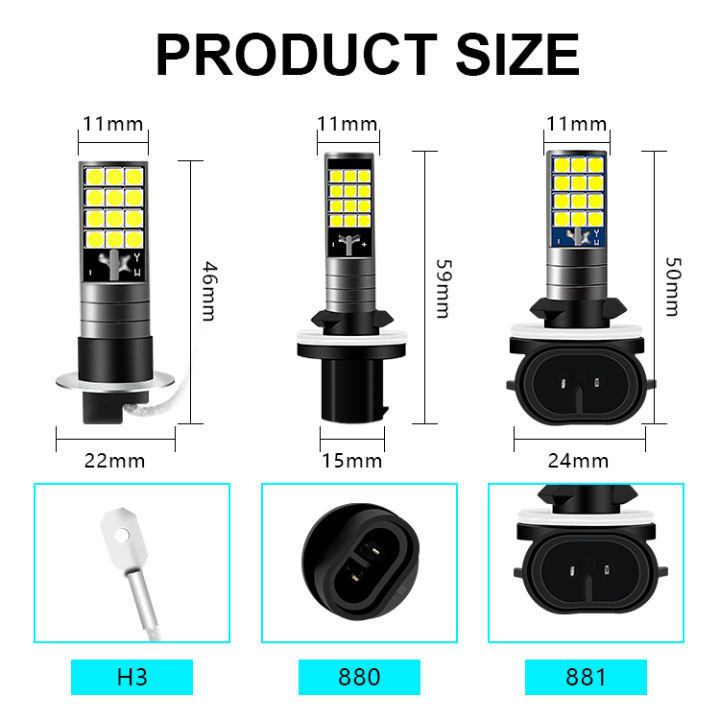 2pcs%20H3%20H27%20881%20880%20Fog%20Lights%20LED%20Bulb%20Super%20Bright%20Car%20Fog%20Lights%20Day%20Driving%20Running%2012V%206000K%20White%20Blue%20Green%20-%20Image%205