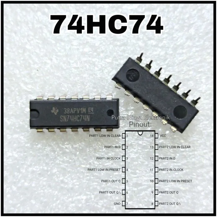 2Pcs ic TTL 7474 74HC74 dip 14p / SN74HC74N / HD74HC74P logic Gate IC