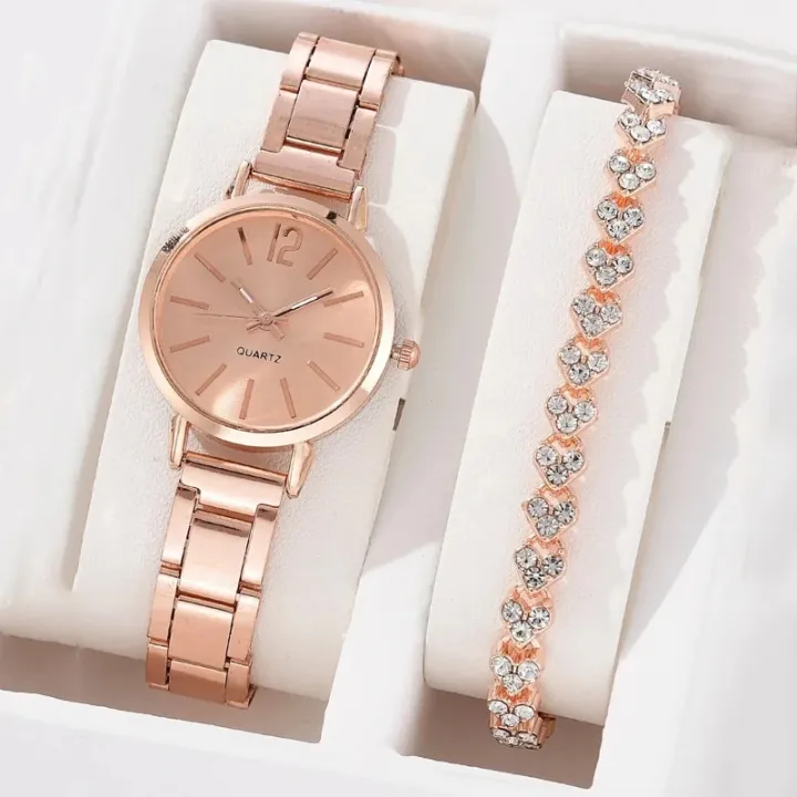 2pcs Set Watch Luxury Women Simple Dial Hollow Strap Fashion Gold Bracelet Quartz Wristwatch Student Ladies Watches Reloj Mujer