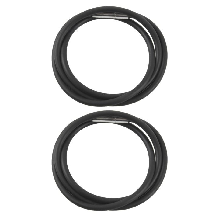 2X 3mm Cord In Rubber Black Necklace with Clasp In Steel Stainless - 16 Inch
