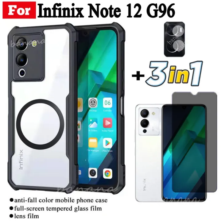 3 in 1 Infinix Note 12 G96 Shockproof Phone Case With Magnetic Wireless Charging Sticker For Infinix Note 40 Note 30 Anti Spy Privacy Tempered Glass Screen Protector +Lens Film