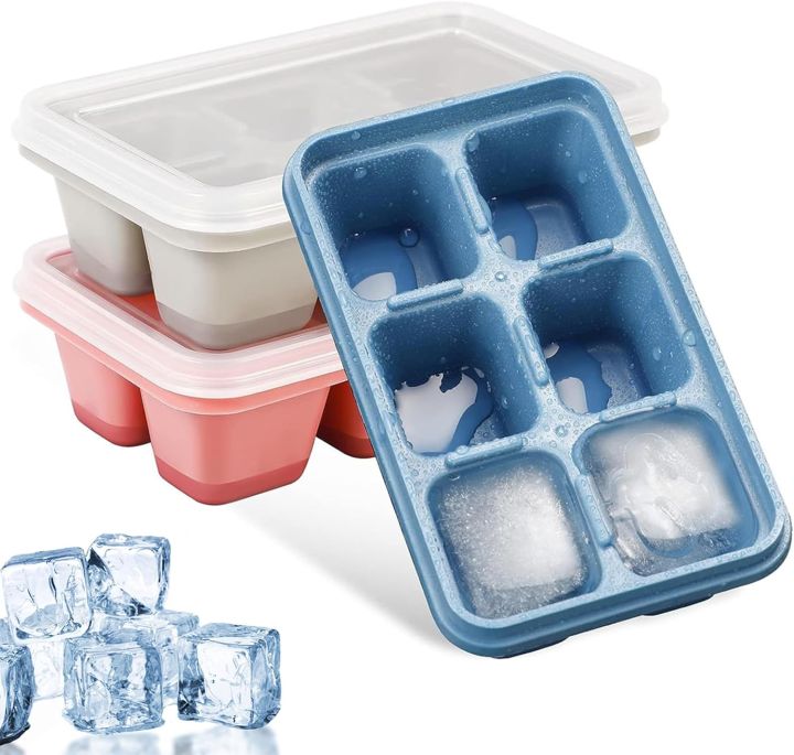 3 Pack Ice Cube Trays, Easy Release Silicone Ice Molds with Removable Lids, Perfect for Chilled Drinks, Freezer, Baby Food, Whiskey and Cocktail