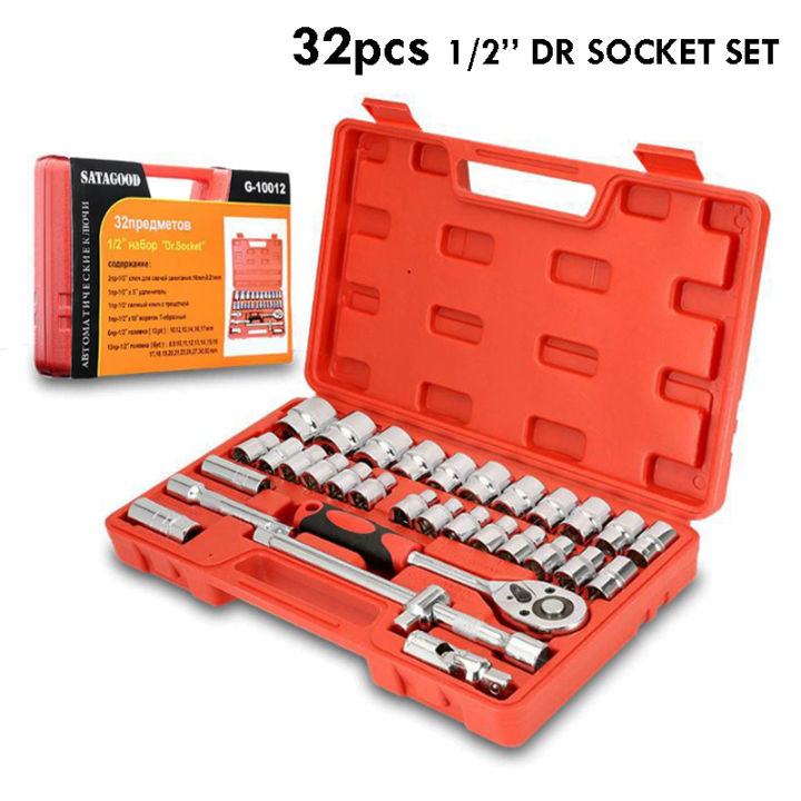 32PCS 1/2'' DR Box Socket Set Box Spanner Set Wrench Tools Set