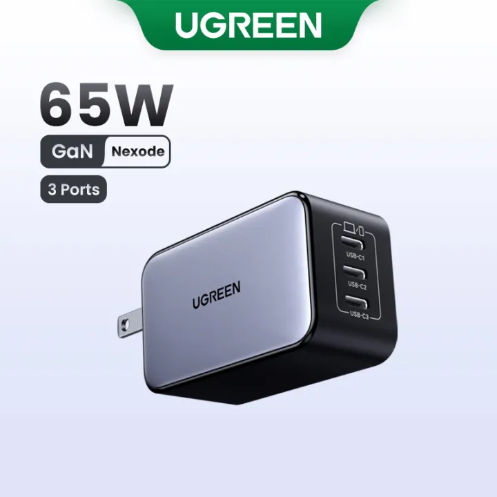 【3C Ports】UGREEN 65W GaN 3-Port Type C Android Charger Adapter Fast Charger for SAMSUNG S24 Ultra S23 S22 ultra xiaomi 12T iPhone 16 15 pro max 14 pro max13 pro 12 pro max Samsung Tab S7 Lenovo ASUS Laptop Fast Charger