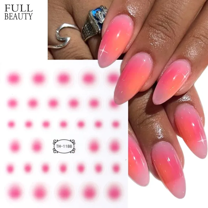 3D Air Brush Nails Art Sticker Pink Powder Blusher Slider Aura Nail Gradient Round Halo Dye Self Adhesive Decals French Manicure