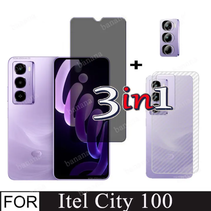 3in1 Privacy Tempered Glass for Itel City 100 Screen Protector for Itel City100 back film+Camera Lens Film