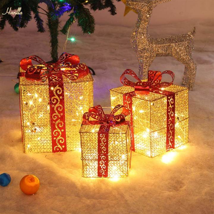 3Pcs Christmas Lighted Gift Boxes for Home Decor Holiday Christmas Tree
