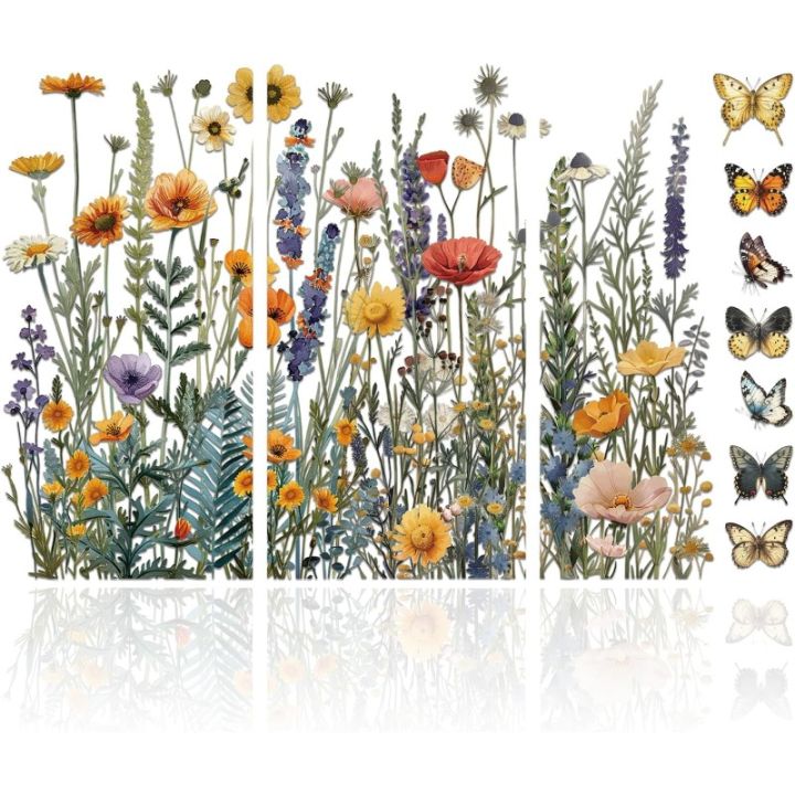 3Pcs%20Wildflowers%20Furniture%20Transfer%206x12inch%20Butterflies%20and%20Flowers%20Rub%20on%20Transfer%20Self-Adhesive%20Wall%20Art%20Decals%20for%20Bedroom%20-%20Image%201