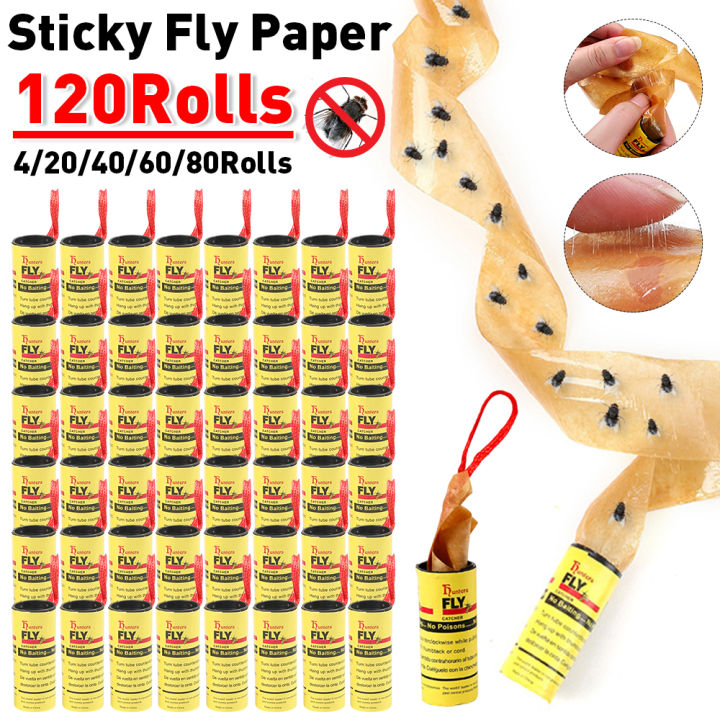 4-120Pcs Fly Sticky Paper Strip Strong Glue Double Sided Flies Paper Strips Flying Insect Bug Mosquitos Catcher Roll Tape