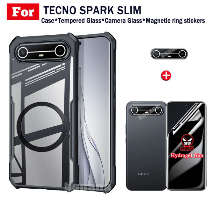 4 in 1 Tecno Spark Slim 4G Shockproof Phone Case With Magnetic Wireless Charging Sticker For Tecno POVA Slim 5G Anti Spy Full Coverage Tempered Glass + Lens Film