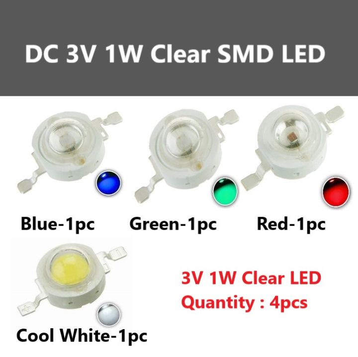 4%20pcs%20of%203V%201W%20SMD%20Clear%20LED%20Blue%20Red%20Green%20White%20-%20Image%201