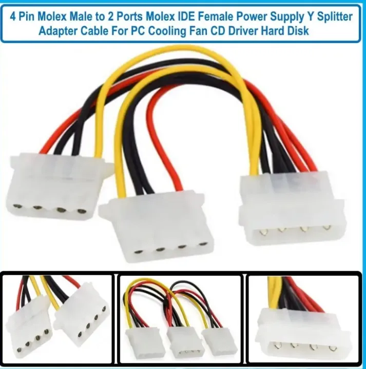 4 Pin Molex Male to 2 Ports Molex IDE Female Power Supply Y Splitter Adapter Cable For PC Cooling Fan CD Driver Hard Disk