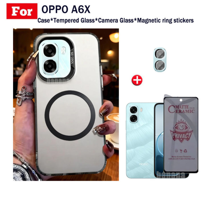4in1 OPPO A6X IMD Phone Case With Ring Iron Sheet Magnet for OPPO A6 Pro A5 Pro A5X A3X A5i A60 A79 Privacy Soft Screen Protector + Camera Lens Film