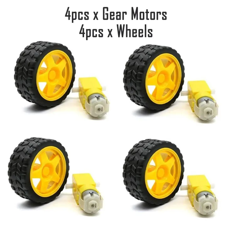 4pcs%20Gear%20Motors%20and%20Wheels%20for%204WD%20Arduino%20Smart%20Robotic%20Car%20TT%20Gear%20Motor%2065mm%20x%2028mm%20Yellow%20Plastic%20Rubber%20Tire%20Wheel%20-%20Image%201