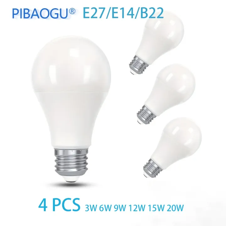 4PCS LED Light Bulbs 220V 3W 6W 9W 12W 15W 20W LED Bulb Energy Saving LED Bulbs E27 E14 B22 Standard Base Lighting