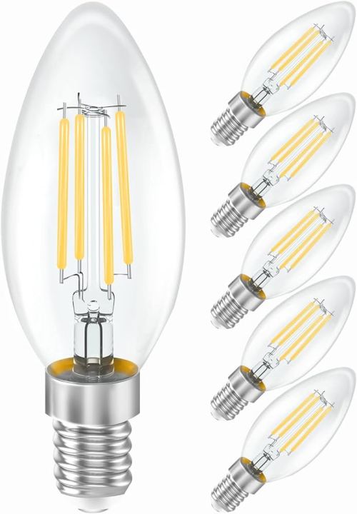 4W LED Filament Candle Light Bulb, E14 Edison Screw Classic Candle Bulb, Warm White 400LM, 40W Equivalent Incandescent Replacement, AC110-120V